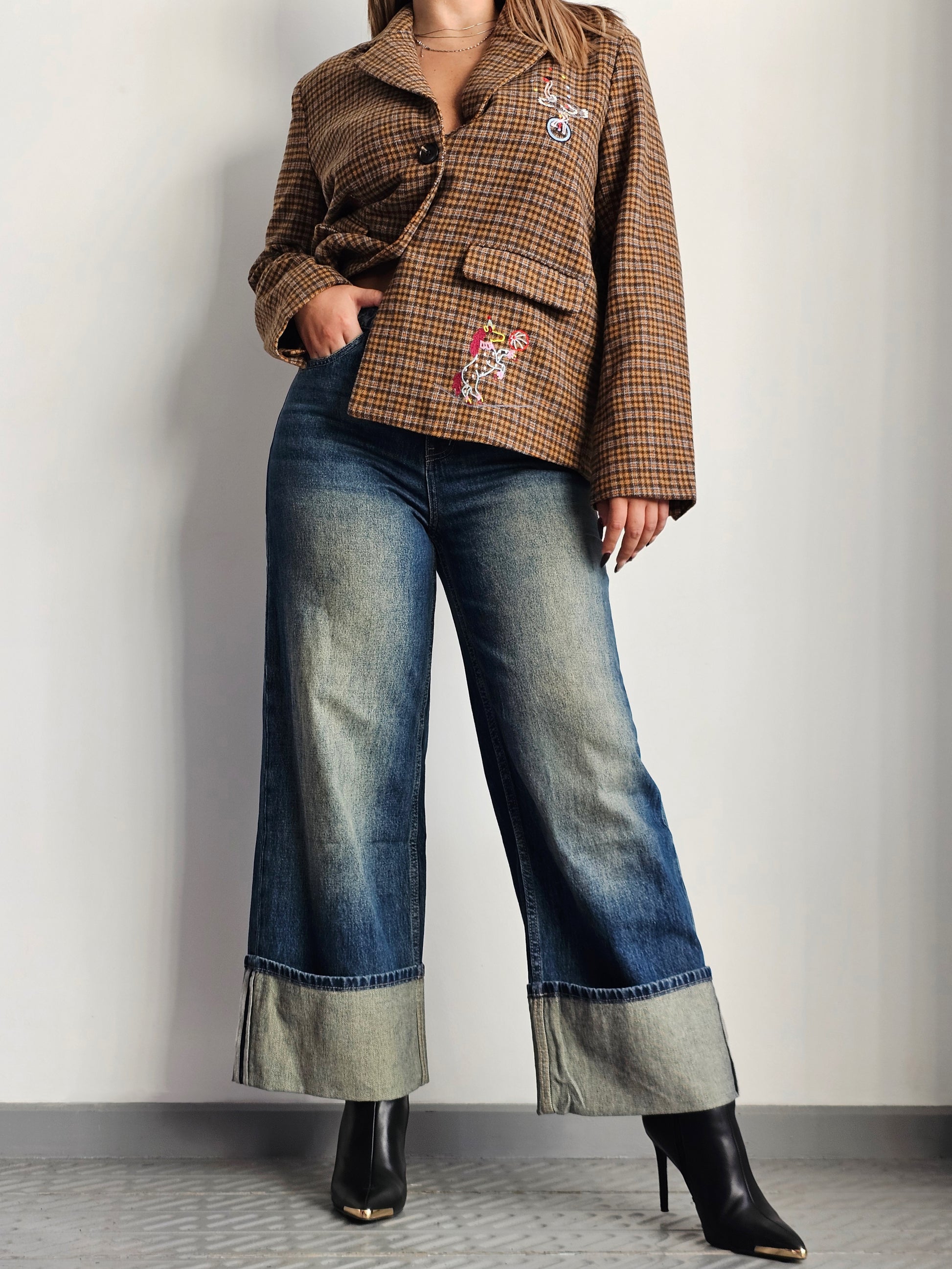 Η ελαφρώς oversized γραμμή του χαρίζει ανεπιτήδευτο chic χαρακτήρα, ενώ το διακριτικό καρό μοτίβο προσθέτει ρετρό φινέτσα. Ιδανικό για επαγγελματικό look με παντελόνι ή φούστα, αλλά και για πιο casual συνδυασμούς με τζιν και μπότες.